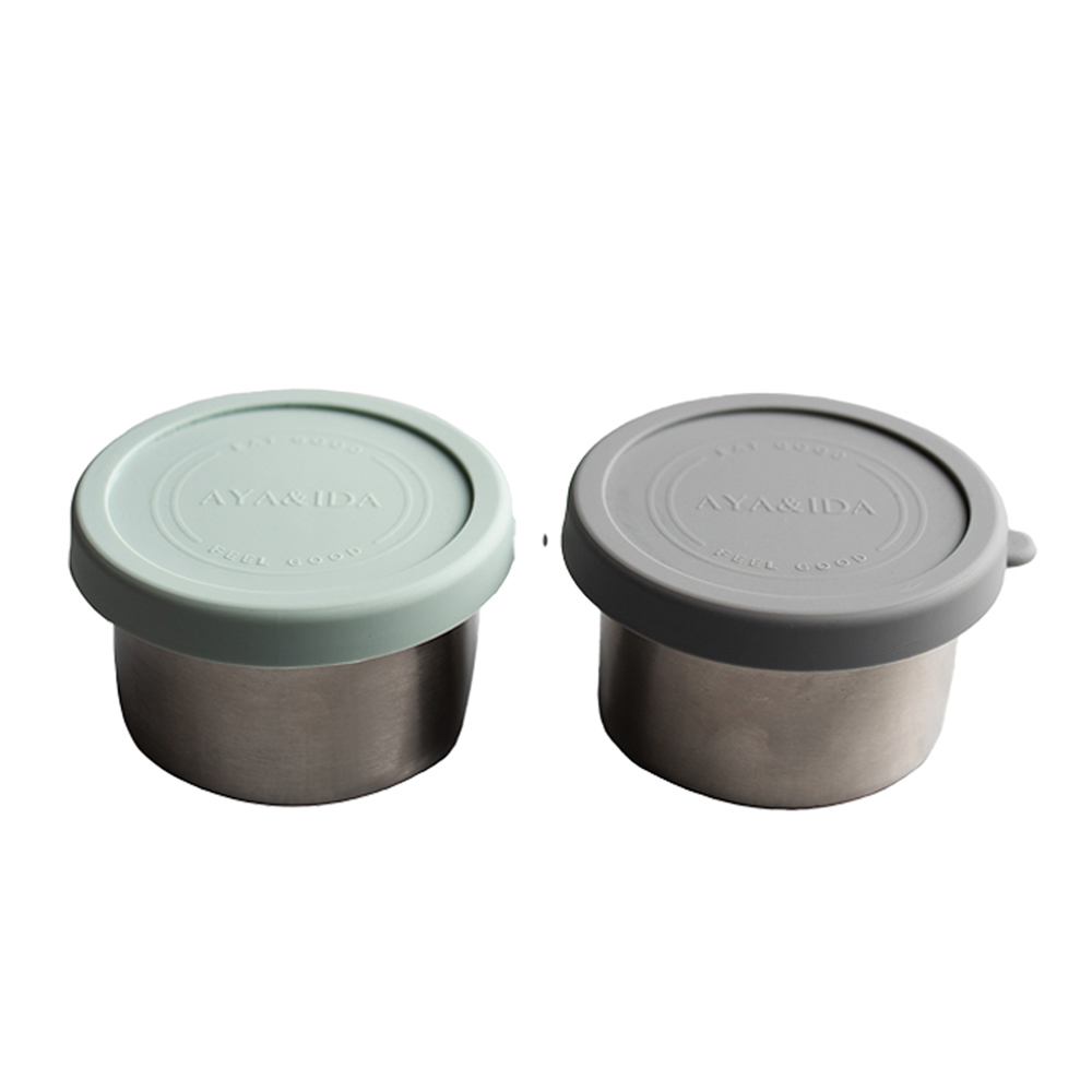 Snack box, 100 ml. (One size) Praktiske små snack box produceret i 100% 1-klasse stål og med platinium silicone låg, som holder tæt og er nem at åbne og lukke selv for de små. Snack boxen kan rumme op til 100 ml. Dette produkt er laboratoriecertificeret t