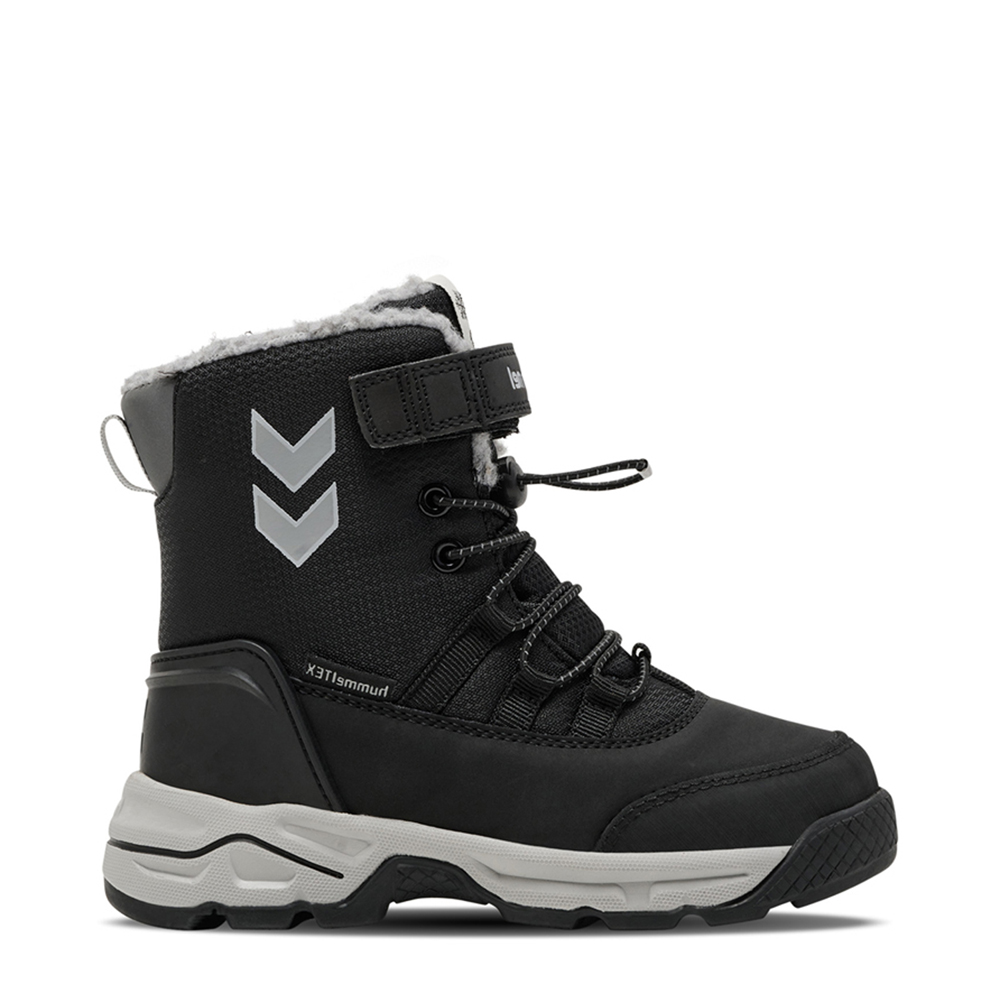 Snow Boot Tex Jr (26) Hummel vinterstøvler med tex-membran sørger for at holde fødderne varme og tørre. Støvlen lukkes med en klipbar velcrolukning og elastiksnøre. BLACK SNOW BOOT TEX JR