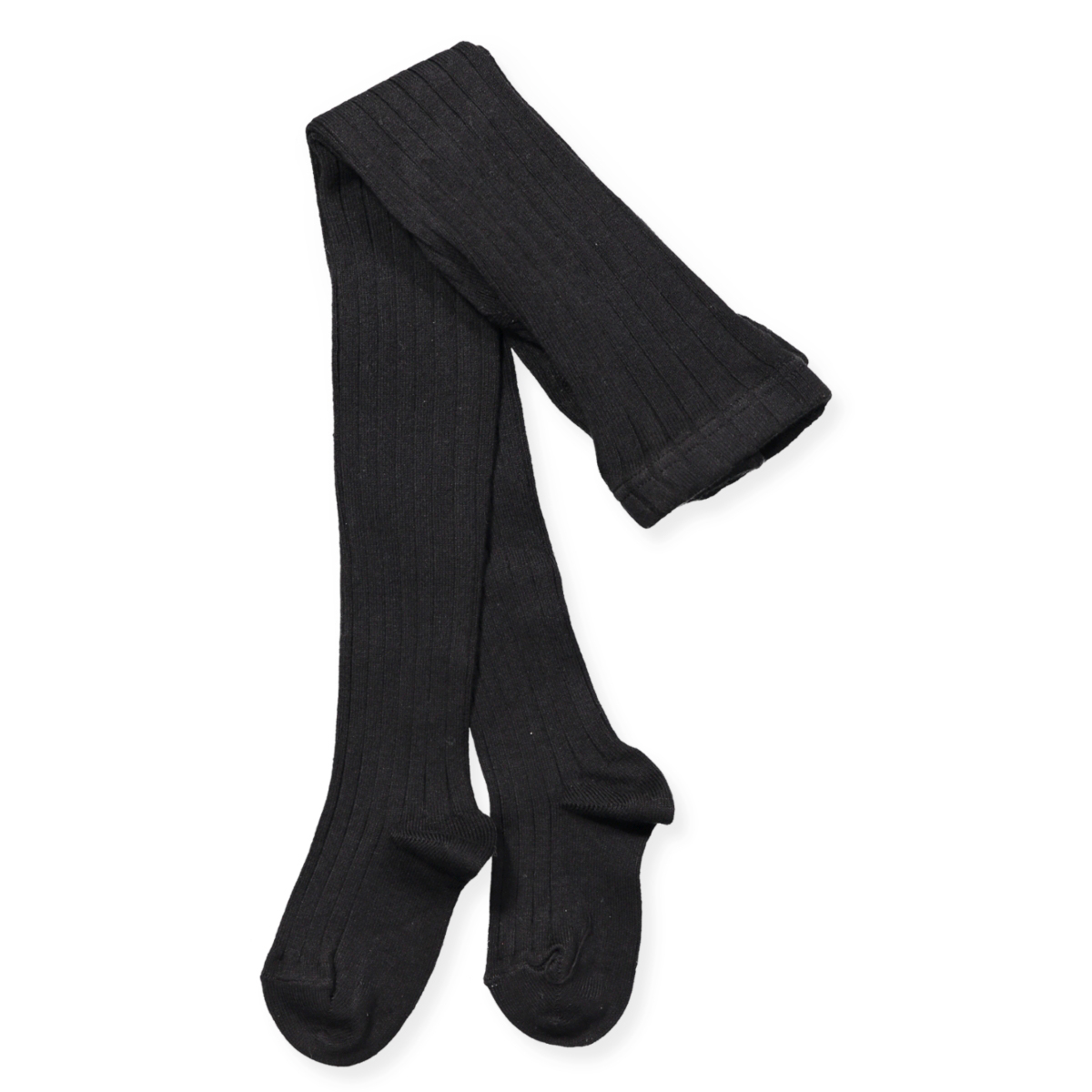 Sorte rib strømpebukser (0-3 mdr) Negro