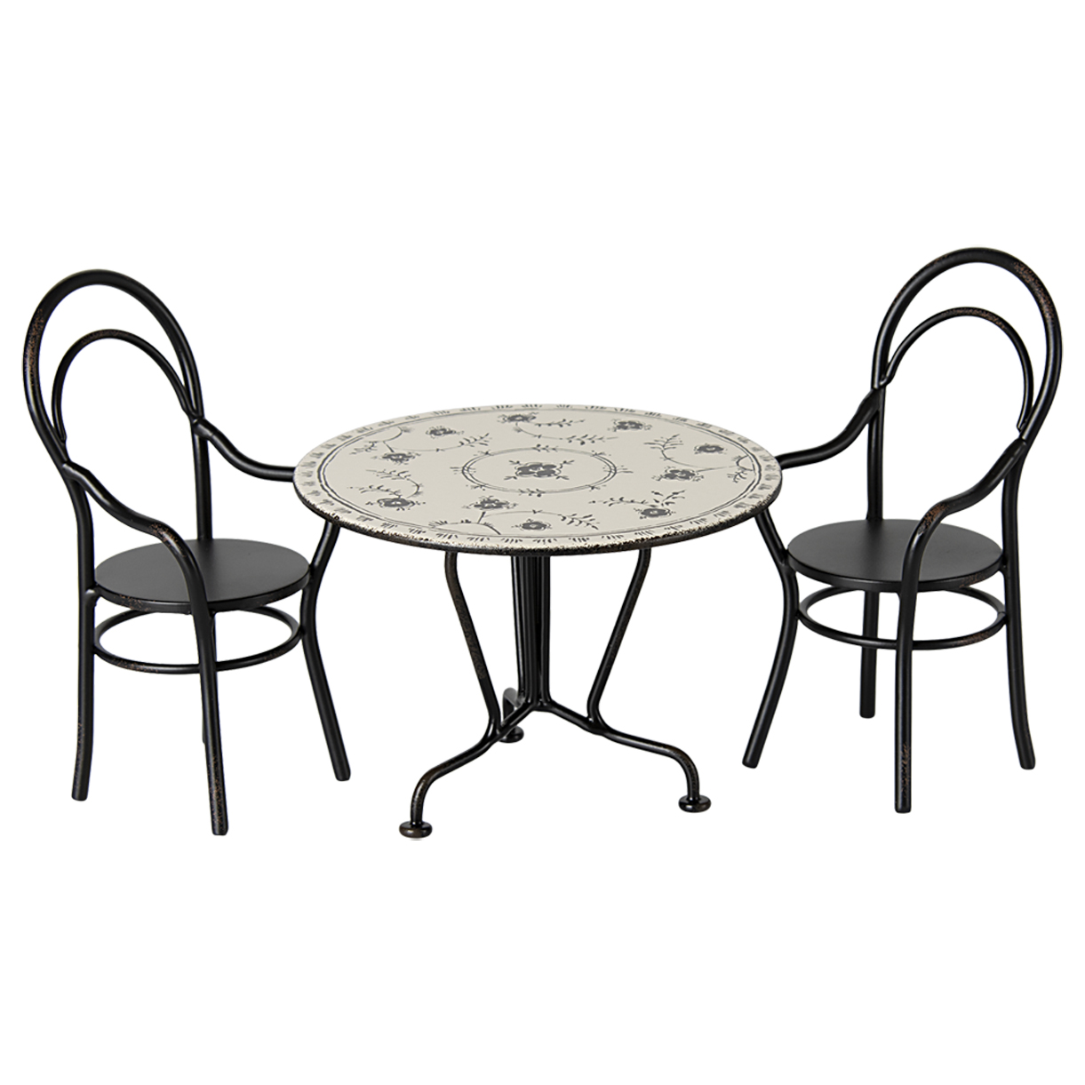 Spisebordssæt (One size) Invitér en ven til en hyggelig søndagsmiddag ved spisebordet. Det runde bord kommer med to fine metalstole og passer perfekt i dukkehuset, hvor kaniner i størrelse 1 og 2 samt Teddy-familien kan tage plads. 11-5110-00