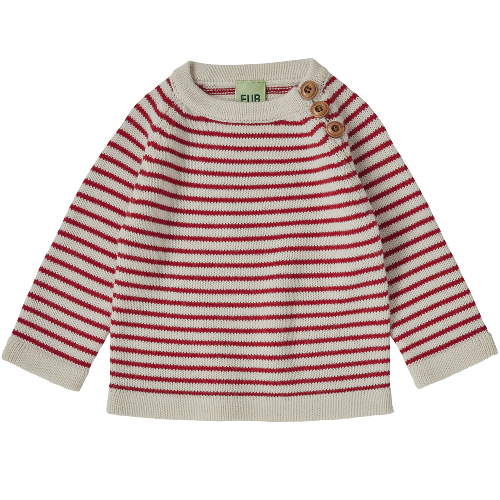 Stribet merinould striktrøje (18 mdr/86 cm) ecru/red