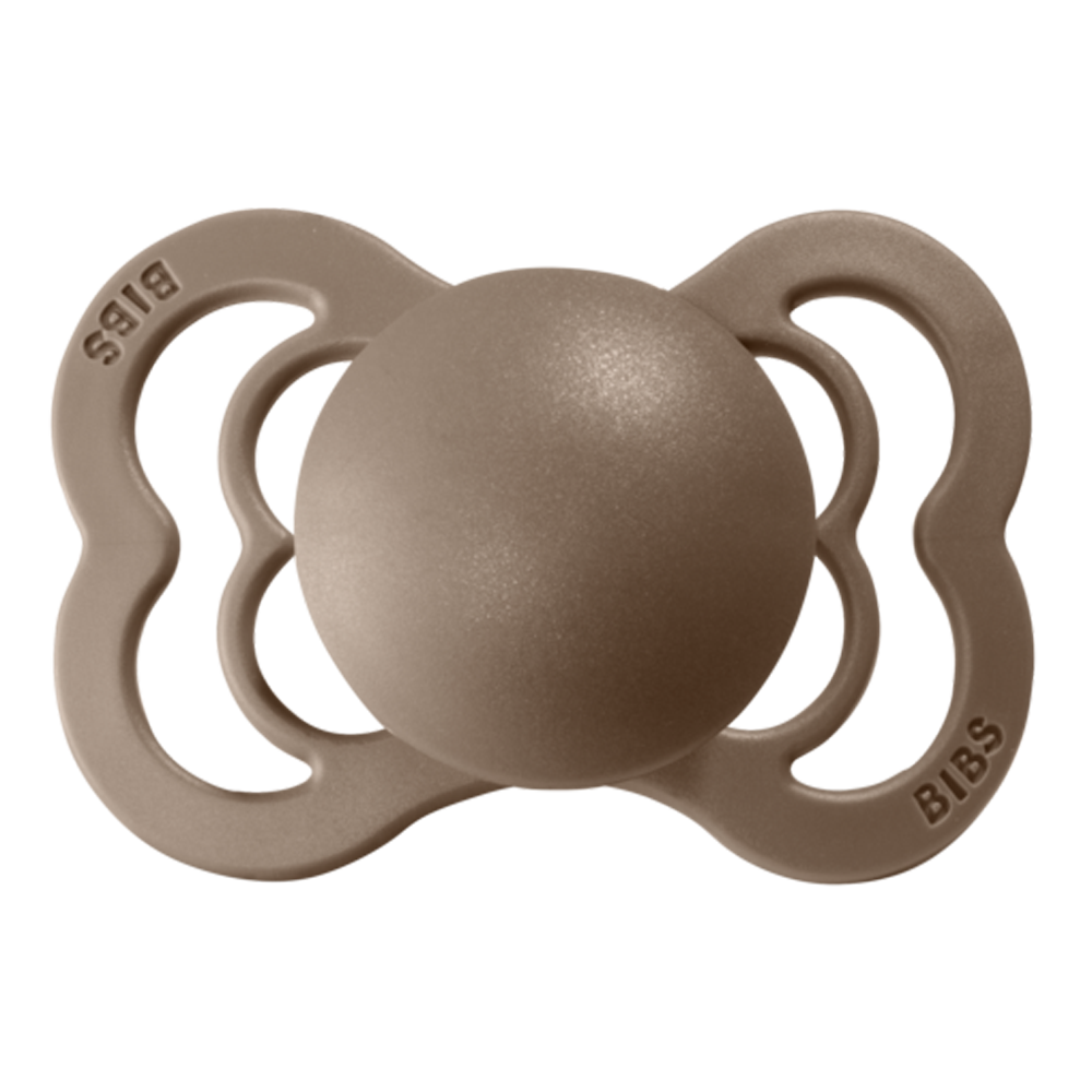 Supreme Latex – dark oak (Size 1 (0-6 mdr)) Sut med et bredt skjold og formet symmetrisk for at reducere presset på tænder og kæbe og passer godt til babyer, som foretrækker en fladere sut. Den er lavet i naturgummi. Skold sutten inden brug, så den er ste