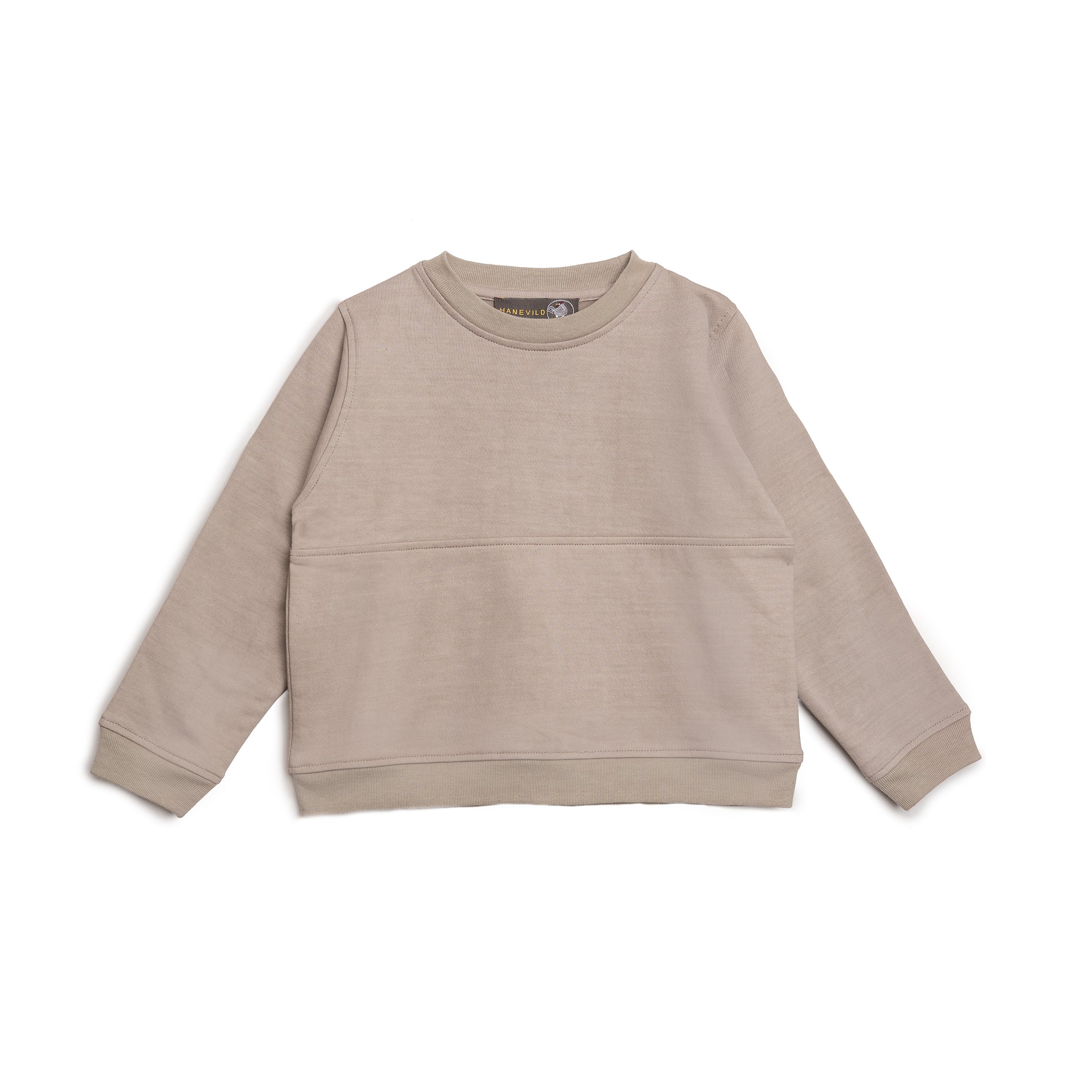 Denne enkle sweatshirt til drenge er i en dejlig mørk sandfarve, der giver et tidløst og alsidigt look. Den har en klassisk pasform med ribkanter ved hals, ærmer og nederkant, hvilket sikrer en god pasform. Perfekt til hverdagsbrug, leg eller afslapning.
