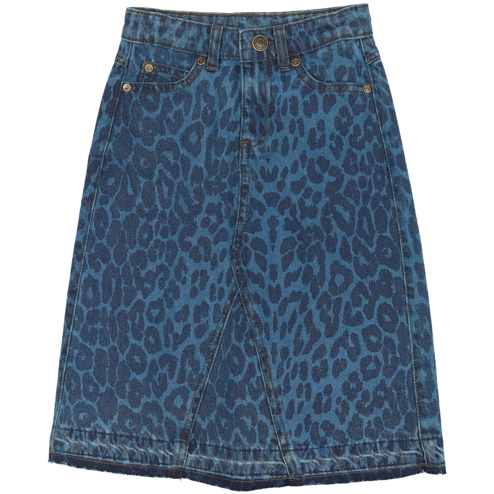 TNPrima nederdel (5-6 år) – Svagt leopardprint i denim – For- og baglommer Medium Blue Denim AOP TNPrima