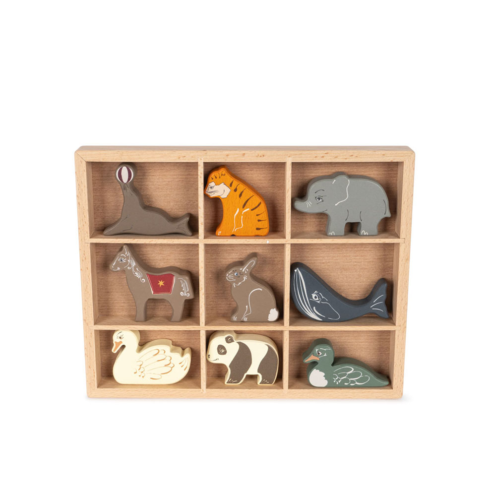 Trædyr (One size) Smuk bøgetræskasse med 9 forskellige dyr. Dette produkt er fremstillet af FSC™-certificeret bøgetræ. MULTI WOODEN MINI ANIMALS
