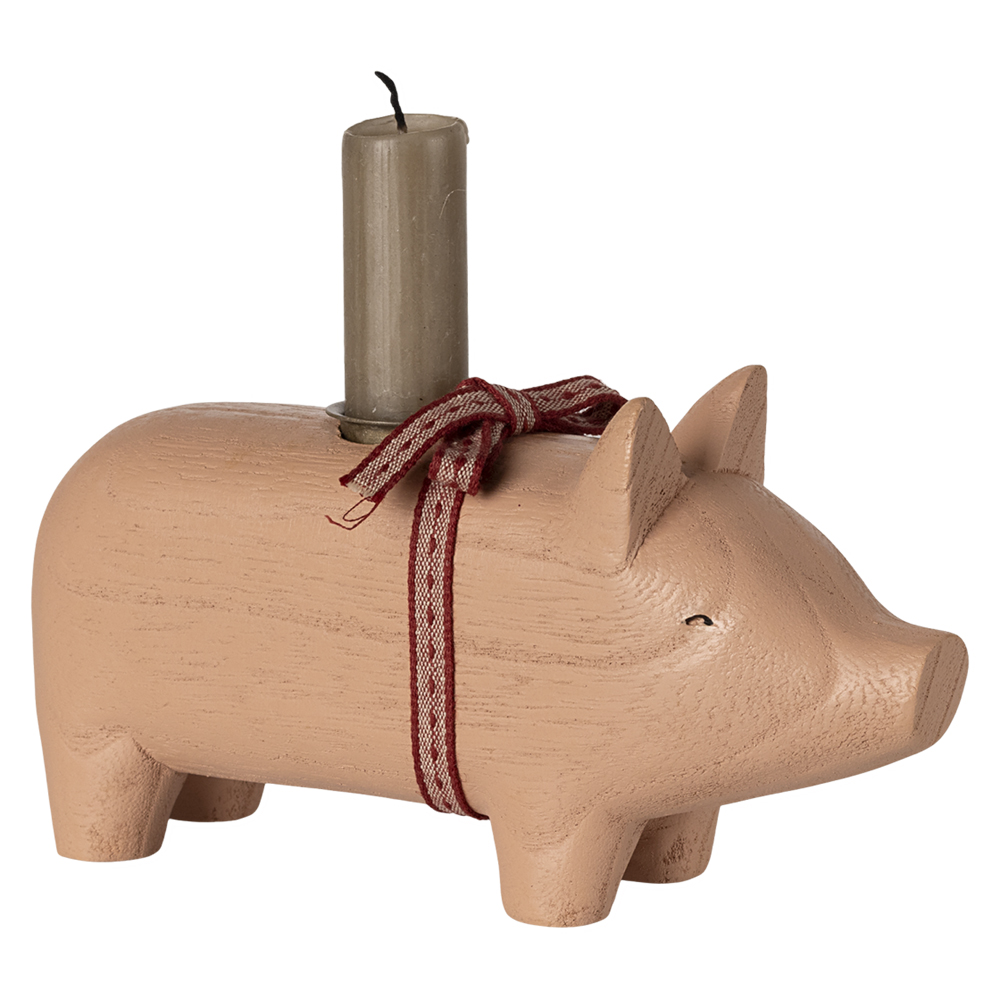 Trægris, lysestage – mellem (One size) Rose Candle holder – Pig