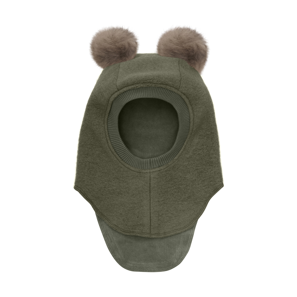 Uld elefanthue – dobbeltlag (2-4 år) Huttelihut elefanthuen har en rund hovedform og en bred, elastisk ribkant omkring ansigtet, så huen lukker godt til. Huen har en praktisk spliteffekt med ekstra længde i nakken, og på indersiden er den foret med blødt