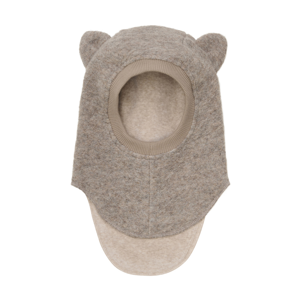 Uld elefanthue – dobbeltlag (2-4 år) Huttelihut elefanthuen har en rund hovedform og en bred, elastisk ribkant omkring ansigtet, så huen lukker godt til. Huen har en praktisk spliteffekt med ekstra længde i nakken, og på indersiden er den foret med blødt