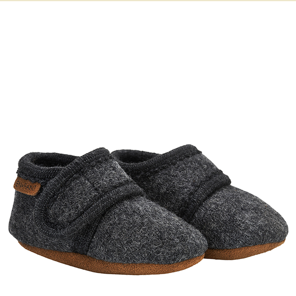 Uld hjemmesko (23-24) Str. 19/20: 11 cm. Str. 21/22: 12,2 cm. Str. 23/24: 13,1 cm. Str. 25/26: 13,5 cm. Str. 27/28: 15 cm. Dark grey melange