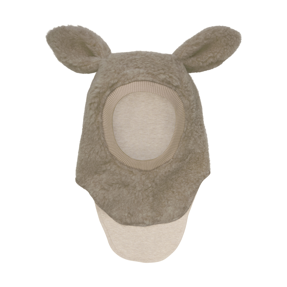 Uldfleece elefanthue – dobbeltlag (2-4 år) Skøn Huttelihut elefanthue i en filtet uldkvalitet med søde kaninører på toppen. Huttelihut elefanthuen har en rund hovedform og en bred, elastisk ribkant omkring ansigtet, så huen lukker godt til. Huen har en pr