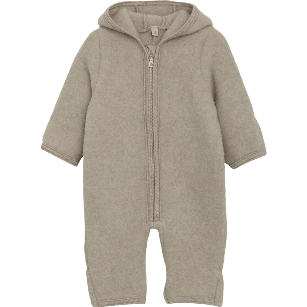 Uldfleece heldragt m. øre (1 mdr/56 cm) – Lukkes med lynlås – Blødt fleecefoer – Praktisk ombuk ved hænder og fødder til og med str. 74 – Dragten har ører ved hætten Camel Melange