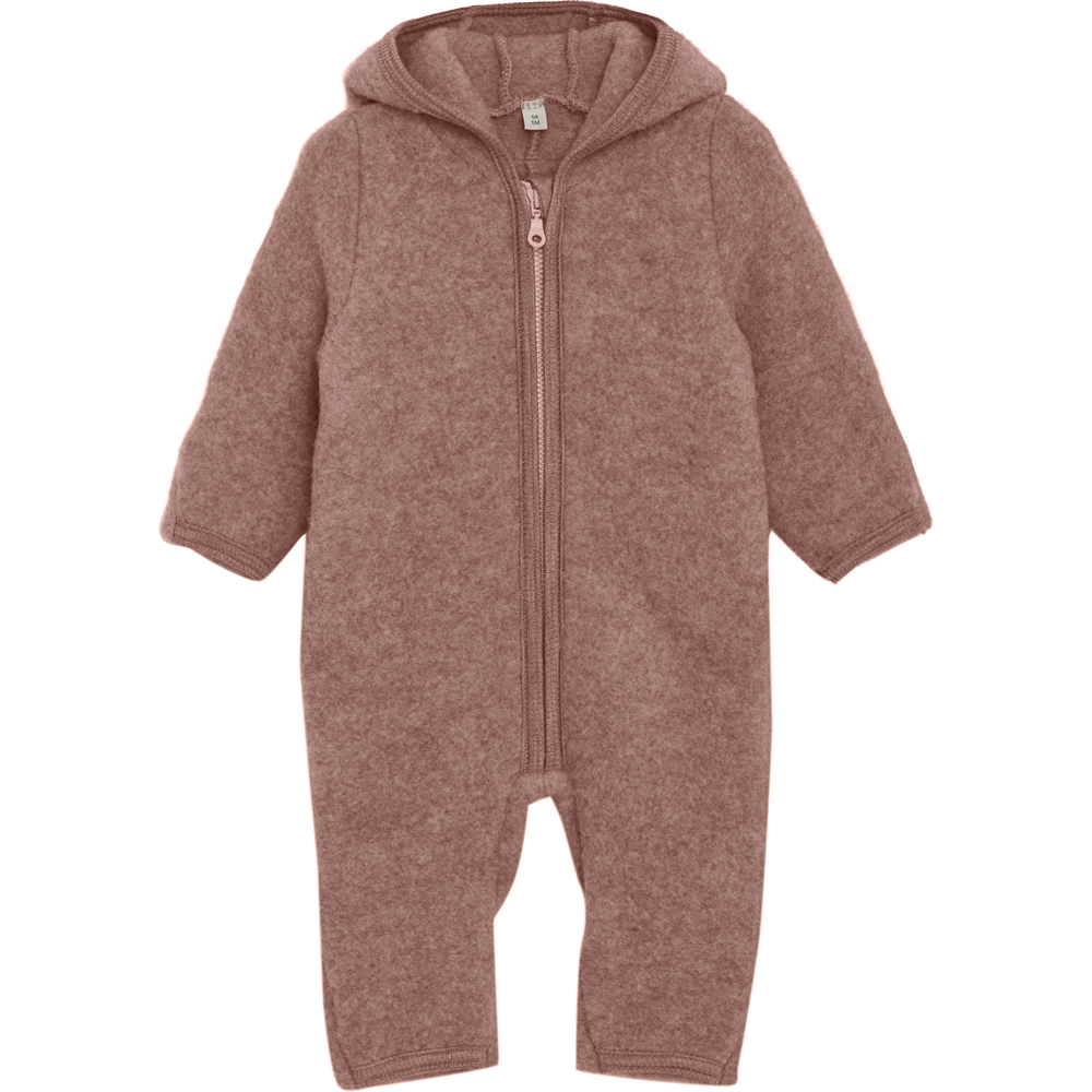 Uldfleece heldragt m. øre (3 mdr/62 cm) – Blødt fleecefoer – Praktisk ombuk ved hænder og fødder til og med str. 74 – Dragten har små øre ved hætten Burlwood