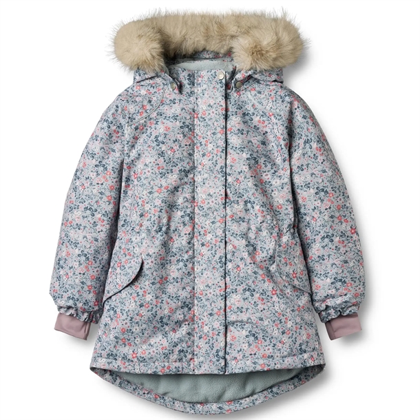 Wheat vinterjakken lukkes med lynlås med hagebeskytter, samt en udvendig vindstolpe, som lukkes med trykknapper. Foran har den to store klaplommer, som lukkes med trykknapper. I taljen har den en indvendigt justerbar elastikkant for bed